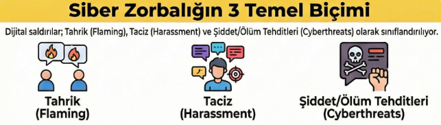 Konuyu dijital şiddet bağlamında biraz açmakta yarar var. Dijital şiddet terminolojisinde tahrik, taciz ve siber tehdit olarak adlandırabileceğimiz üç saldırı biçimi öne çıkmaktadır. Bu saldırılar ile birlikte; kasıtlı provokasyonlar, hakaretler, süreklilik arz eden aşağılayıcı mesajlar, şiddet ve ölüm tehdidine varan söylemler mağdurların hayatını alt üst etmektedir.